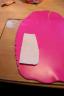 Mit einem flexiblen Messer zwischen Glasplatte und Fimo durchfahren.